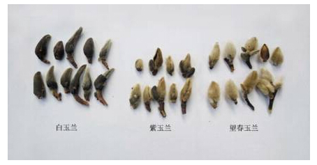 在2015年版《中國藥典》中就有辛夷的相關(guān)記載,稱(chēng)辛夷為木蘭科植物望春花(Magnolia biondii Pamp.)、玉蘭 (Magnolia denudata Desr.)或武當玉蘭 (Magnolia sprengeri Pamp.)的干燥花蕾,冬末春初花未開(kāi)放時(shí)采收,除去枝梗,陰干,便是我們平常所見(jiàn)到的辛夷藥材。