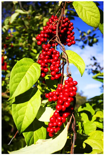 自此,苦娃就在深山老林里開(kāi)荒種地,過(guò)上了舒心的日子。每年的這一天他都不忘到這里祭拜這些果樹(shù)。后來(lái),這些爬蔓的樹(shù)所結之果的籽落地發(fā)芽長(cháng)出新藤,新藤再結新果,數年后,五味子遍布長(cháng)白山腳下。