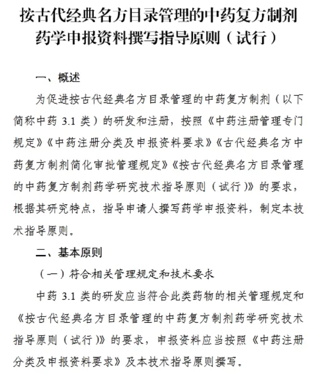 國家藥監局藥審中心關(guān)于發(fā)布《按古代經(jīng)典名方目錄管理的中藥復方制劑藥學(xué)申報資料撰寫(xiě)指導原則(試行)》的通告