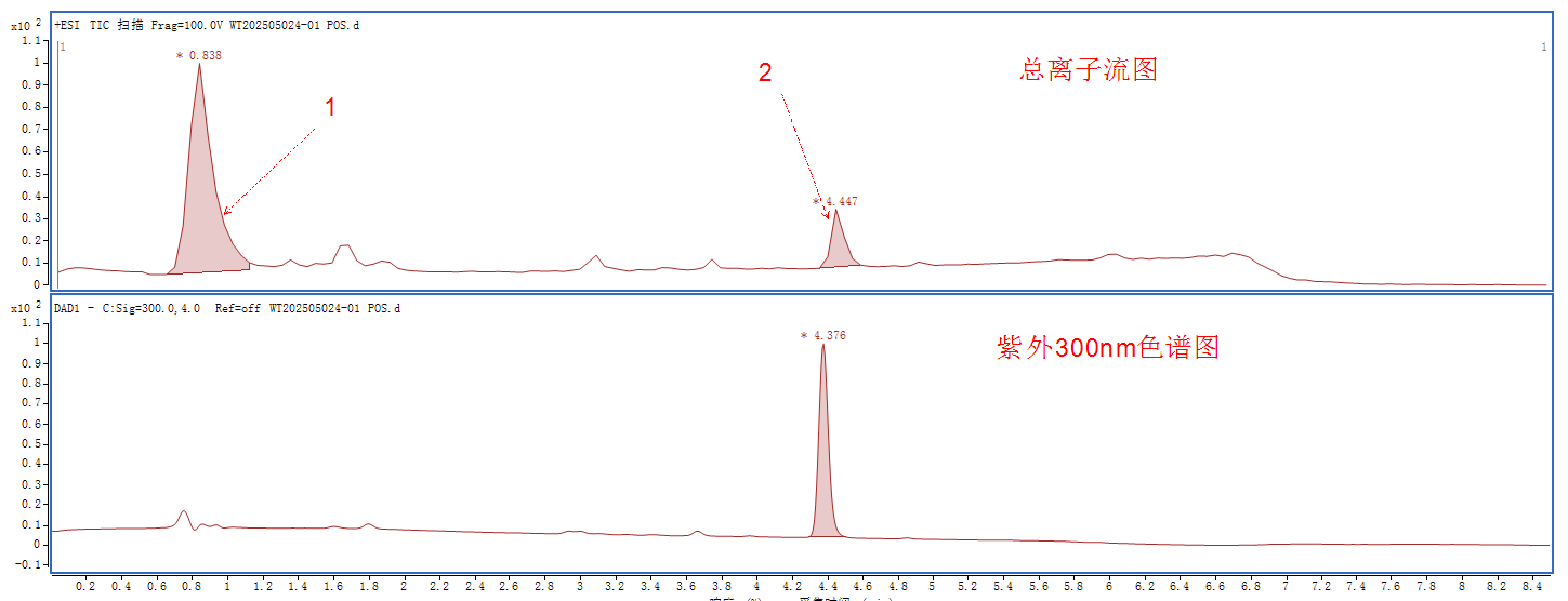 即使是單體化合物,適宜的色譜方法也是精準鑒定的重要起點(diǎn)。對于未知的“單體”,往往只是在紫外色譜單一波長(cháng)下顯示“單一峰”,實(shí)際可能并不單一,而還含有僅在總離子流圖、其他波長(cháng)下才能顯現的雜質(zhì)峰。如果色譜方法不當(例如不過(guò)色譜柱、不串聯(lián)紫外檢測器或使用快速通用方法),可能導致誤把“雜質(zhì)”當目標,出現錯誤鑒定結果。