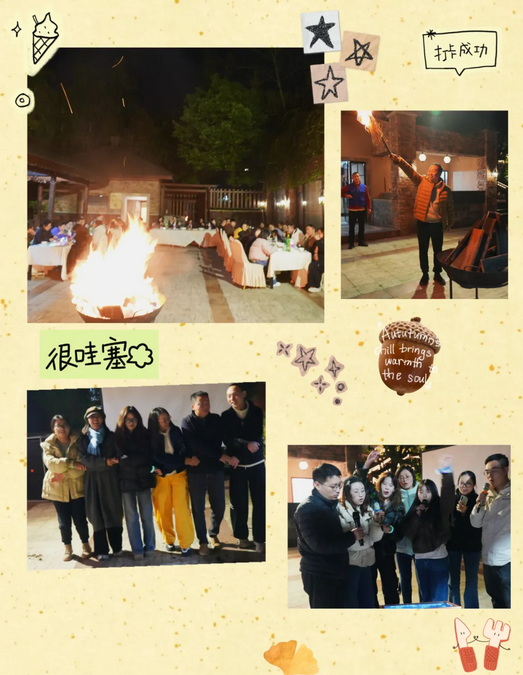 夜幕低垂,繁星綴滿(mǎn)天空,紅楓嶺的篝火晚會(huì )悄然拉開(kāi)帷幕!熊熊燃燒的篝火映照著(zhù)每一張洋溢著(zhù)笑容的臉龐,不僅驅散了秋夜的絲絲寒意,也點(diǎn)燃了每一位普思人心中的熱情與活力。大家圍爐共話(huà)、載歌載舞,在溫暖氛圍中拉近了彼此的距離。