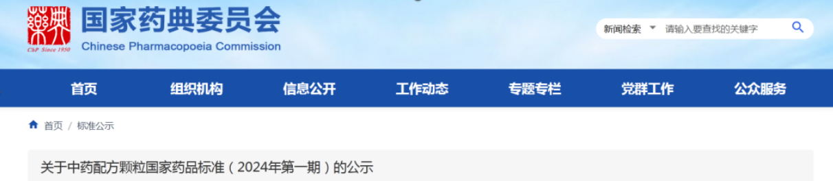 關(guān)于中藥配方顆粒國家藥品標準(2024年第一期)的公示